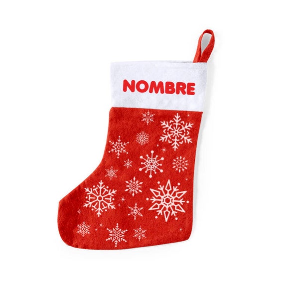 - Calcetín navideño de gran capacidad en tradicional combinación de colores navideños, con cinta para colgar y diseño en ambas caras.