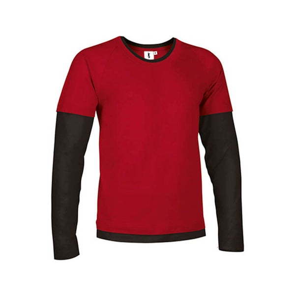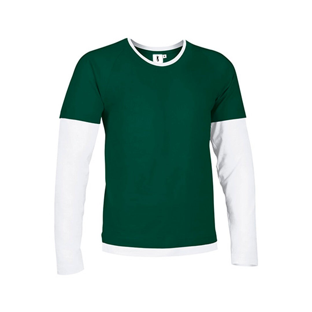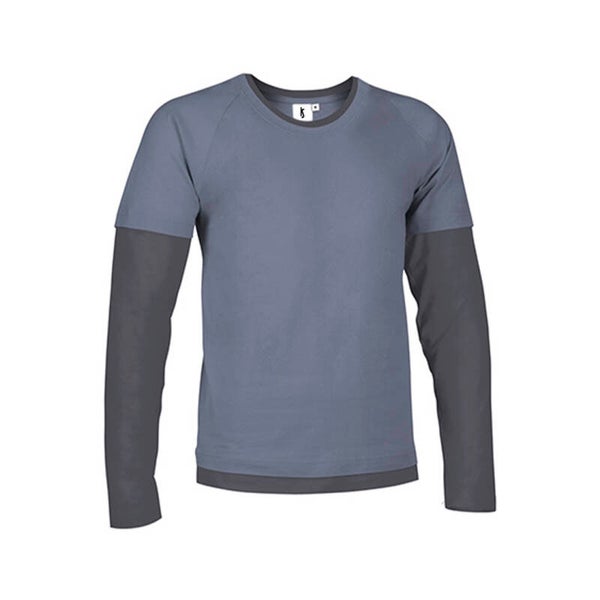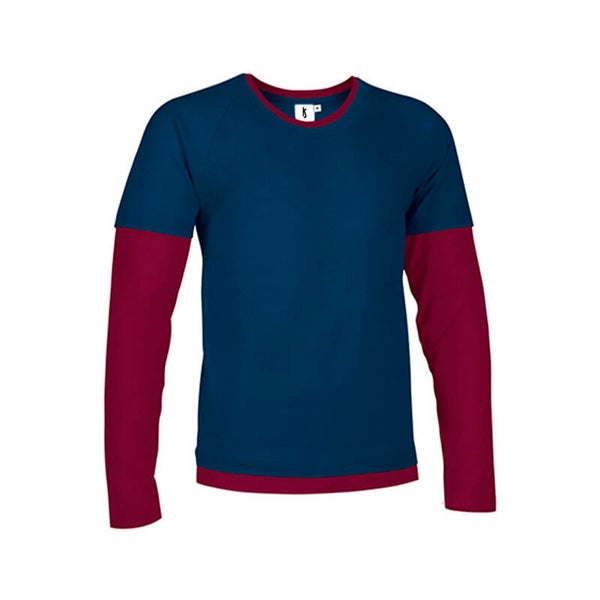 - Camiseta de cuello redondo con diseño bicolor y efecto doble manga.