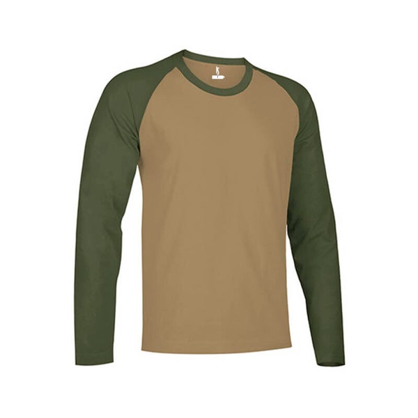 - Camiseta de manga larga, cuello redondo y diseño bicolor.